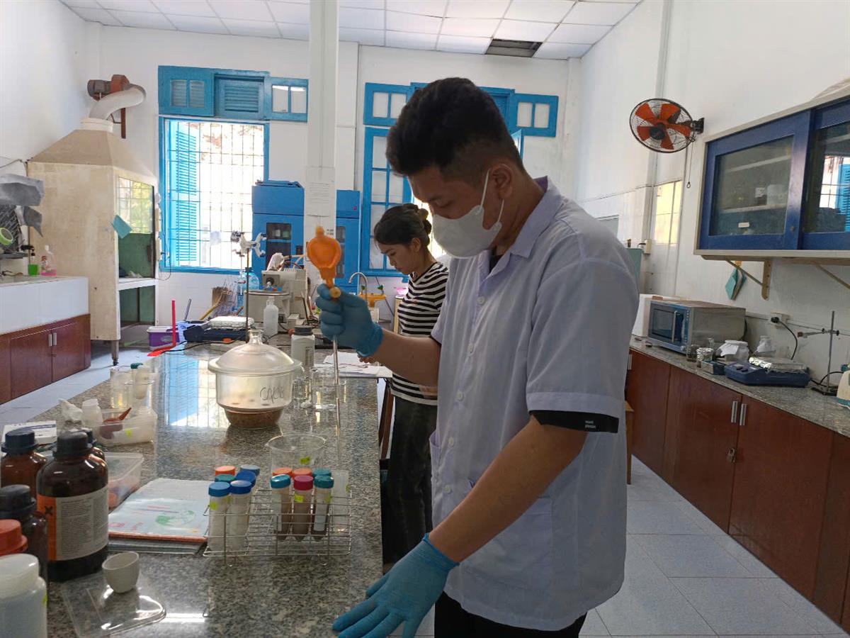 Sinh viên Khoa CNTP thực hiện thí nghiệm tại phòng thí nghiệm.